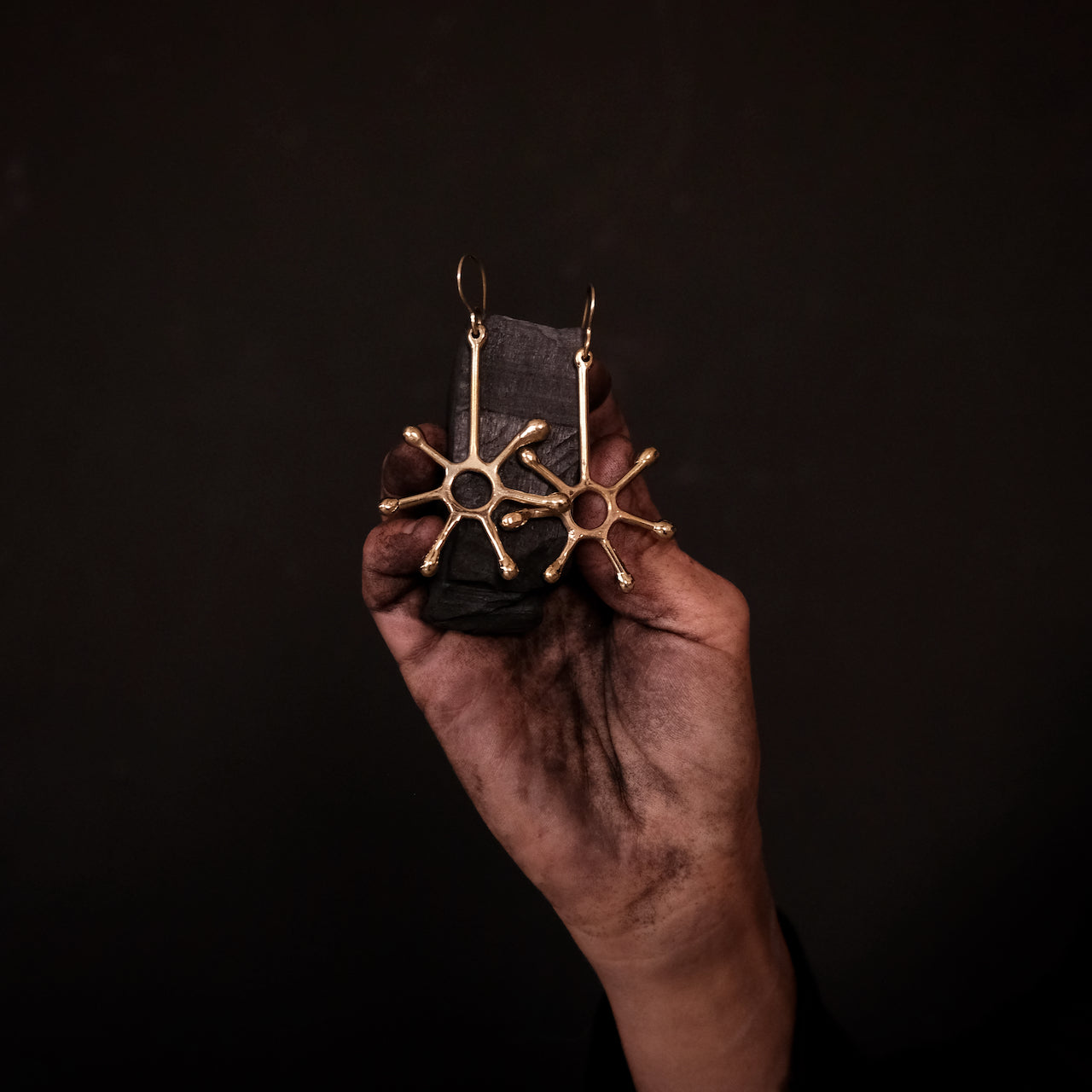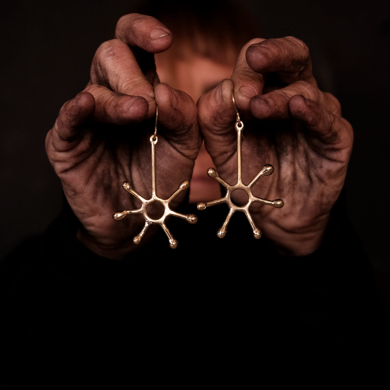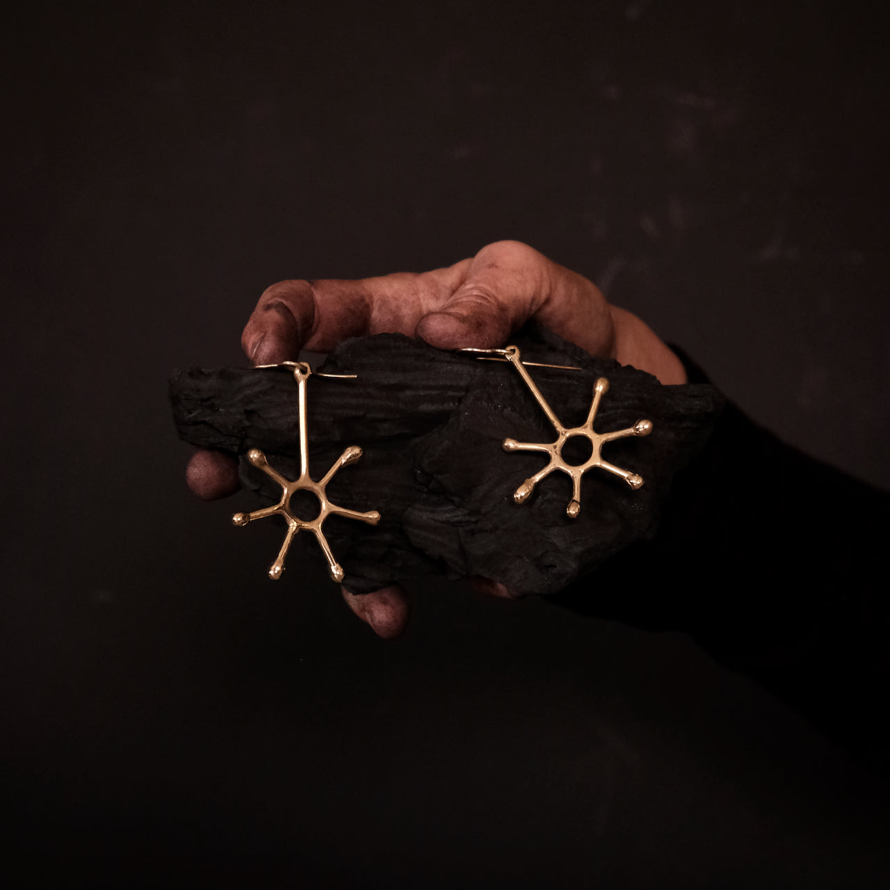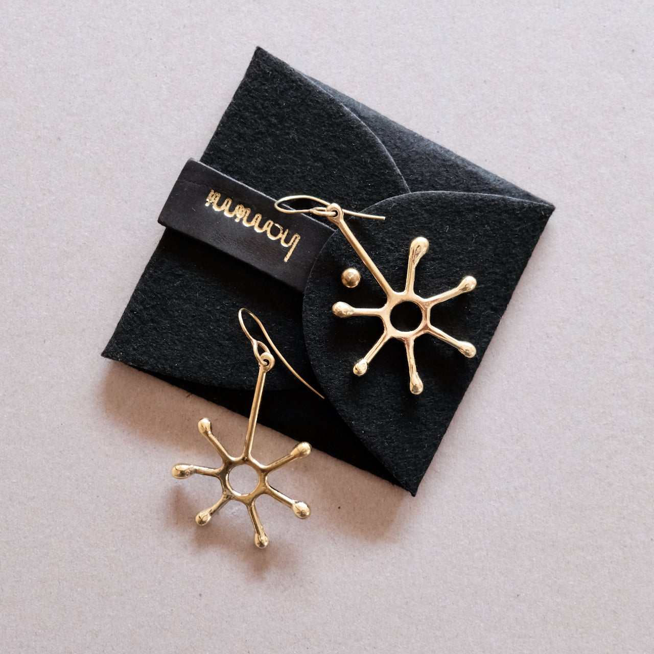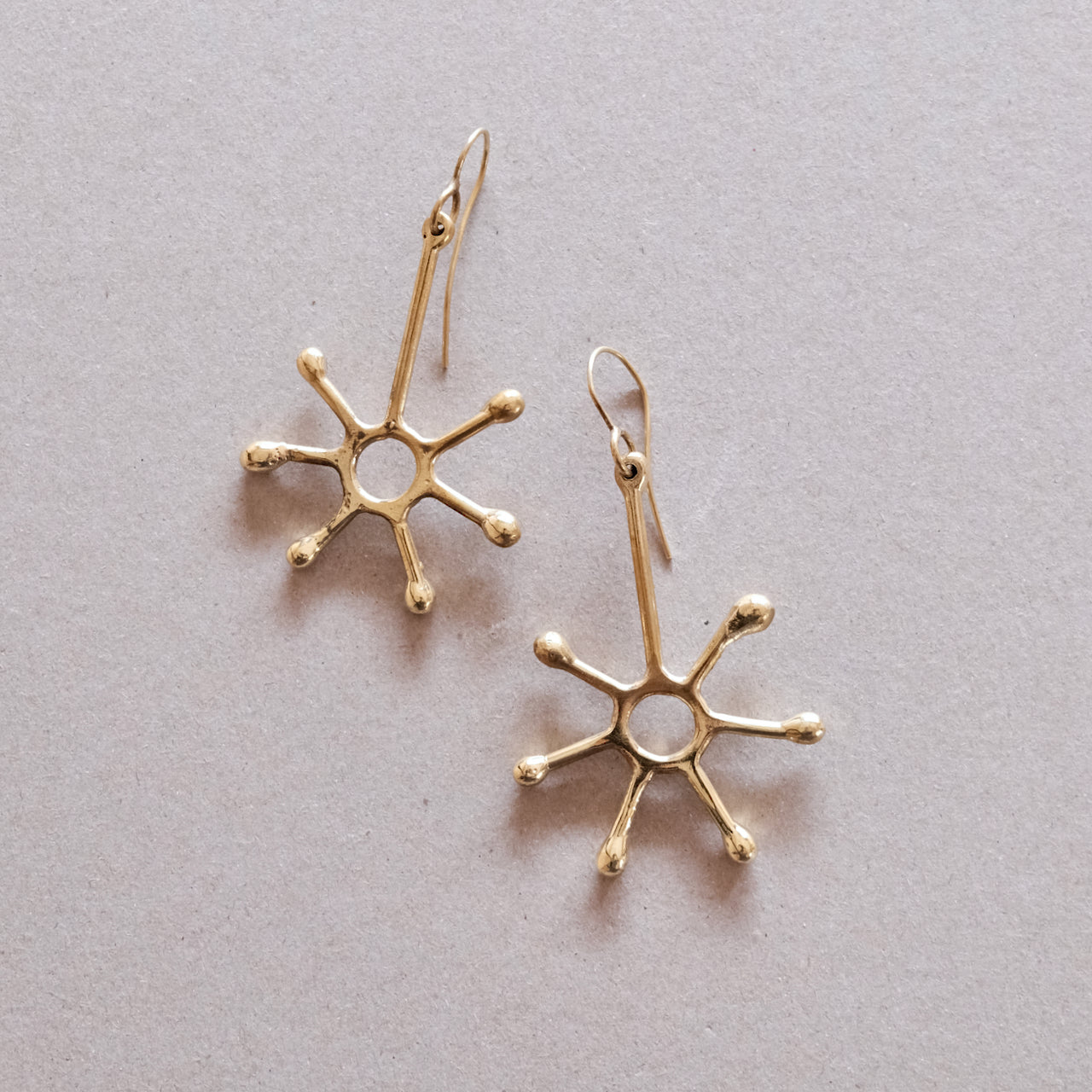 Pendientes colgantes únicos inspirados en el sol hechos a mano en latón macizo con ganchos para la oreja sin níquel.