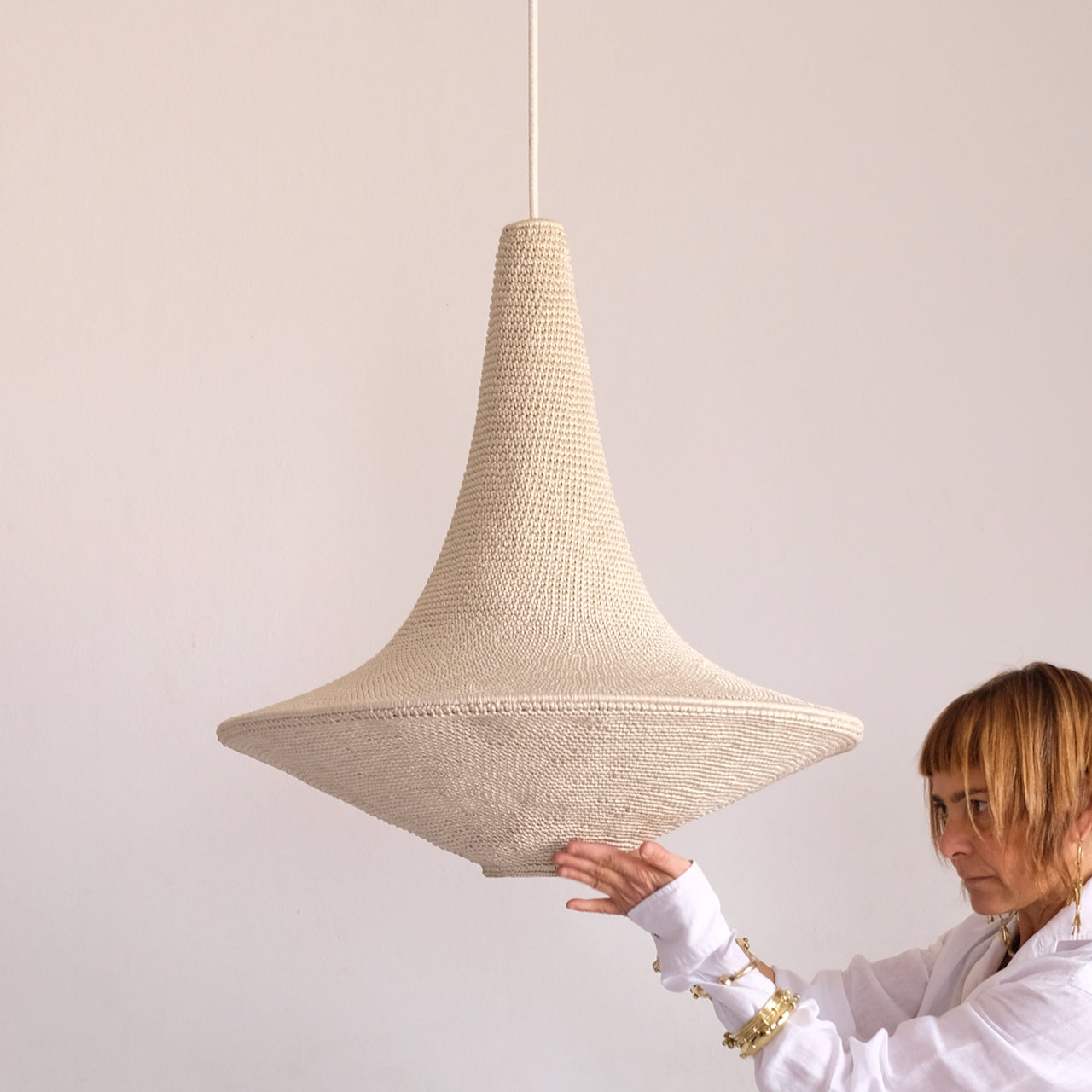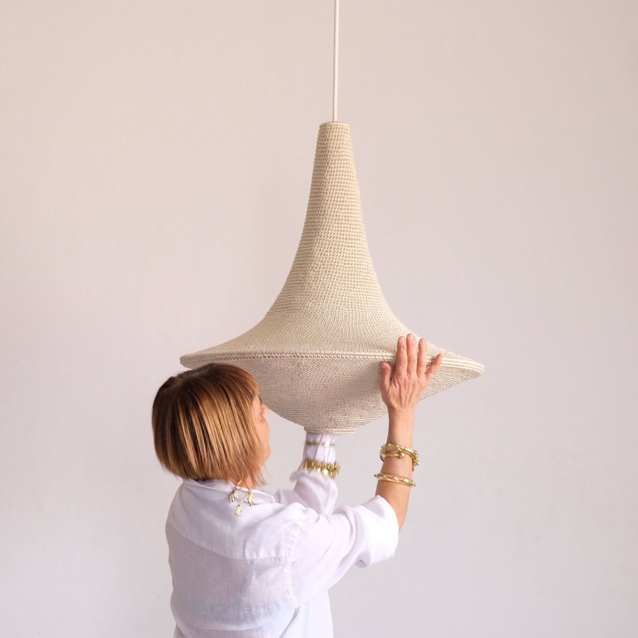 Elevate your space with our XL Wahad Crochet Lamp pendant lamp. Whether it's for your bedroom, social spaces, or dining areas, this stunning piece makes a bold statement on its own or in striking clusters. Lovingly handcrafted, it adds both architectural appeal and Moroccan artistry to any space.