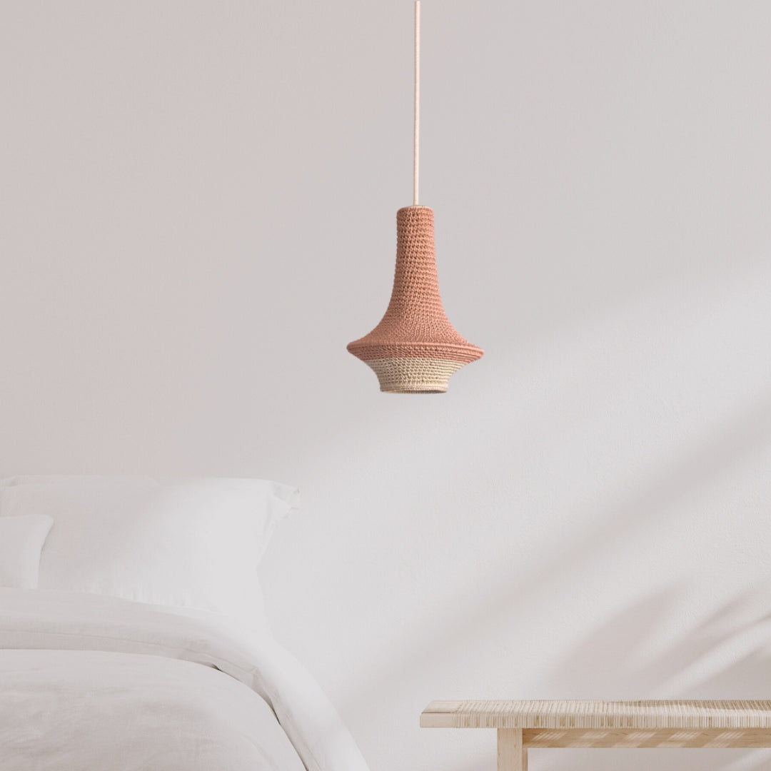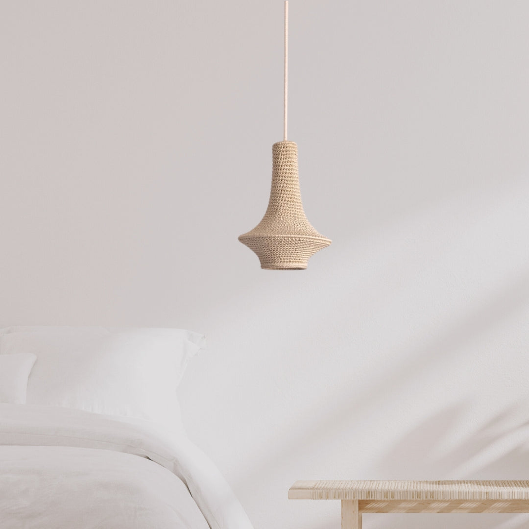 Una pequeña y encantadora lámpara colgante perfecta para dormitorios, espacios sociales o suspendida sobre mesitas de noche. Funciona bien como una sola lámpara o en un par o grupo de lámparas de crochet Hamimi de tamaños similares o diferentes.