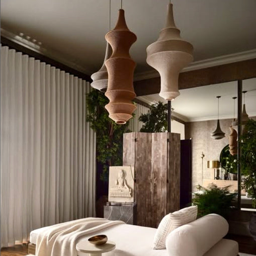 Inspired by the seven patron saints of Marrakech, the Seven Saints Collection channels symbolism into sculptural impact. Each model, from Saint I to Saint VII, features a distinct silhouette, drawing on Moroccan forms reinterpreted with bold clarity and presence. Designed to make a statement, these pendants bring expressive scale, colour, and character to residential, commercial, and hospitality spaces.
