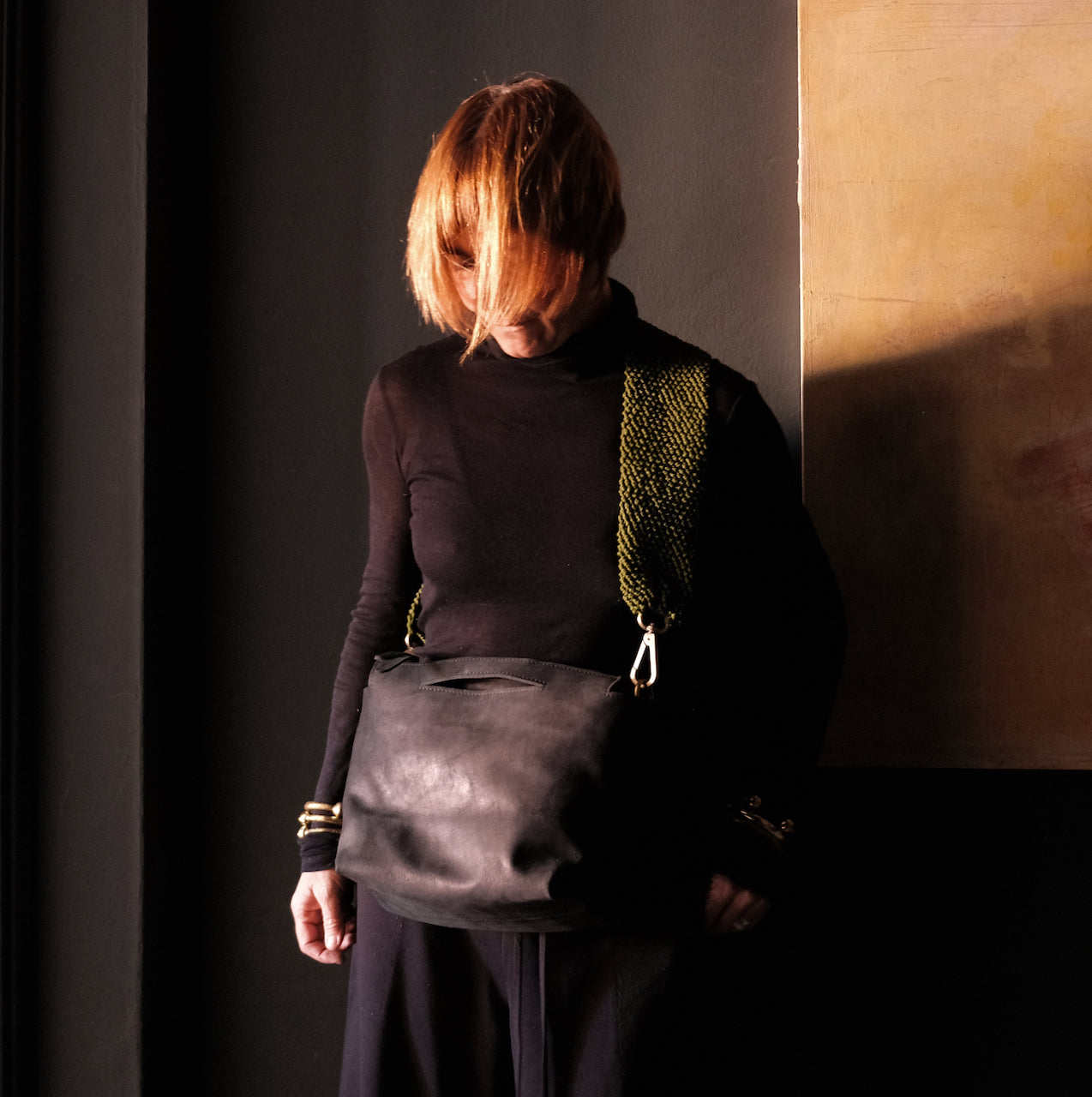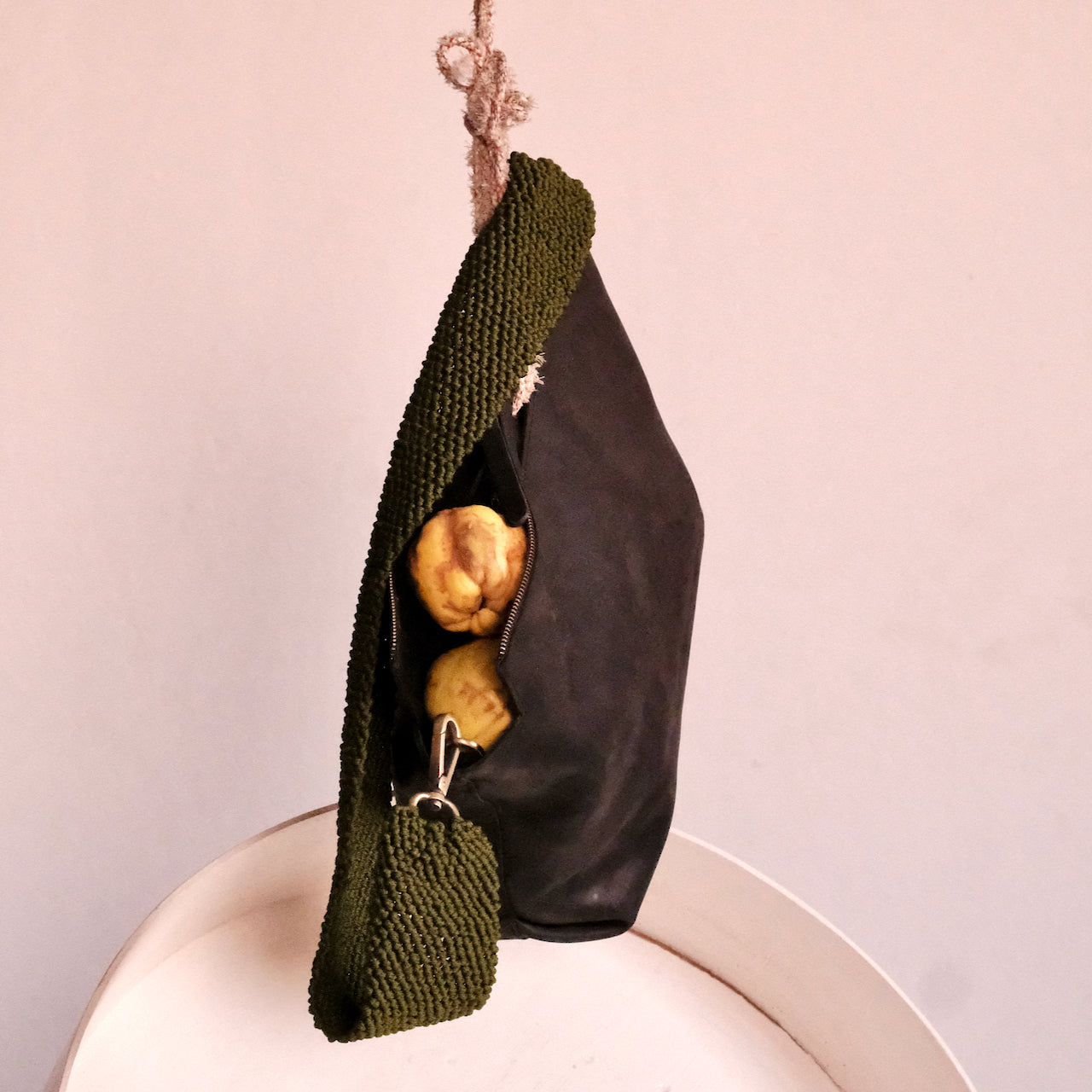 Sac à bandoulière Ogda - Noir avec sangle en macramé olive