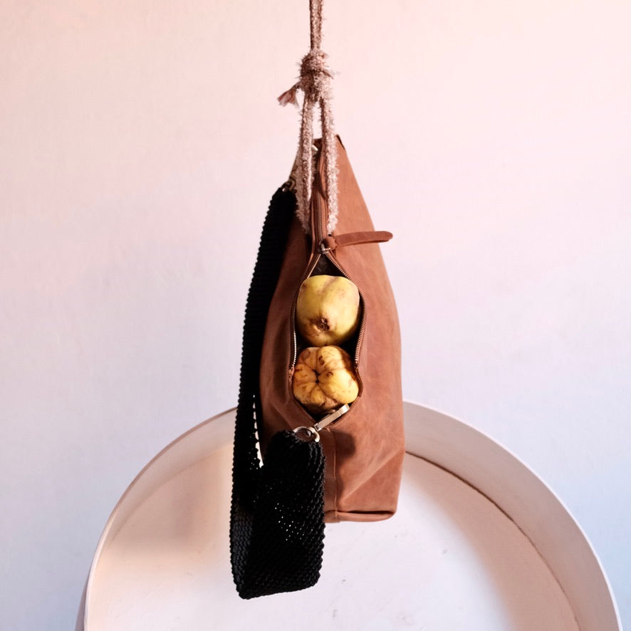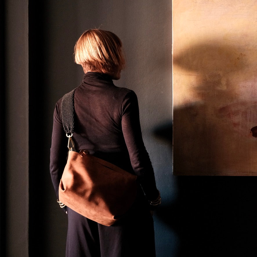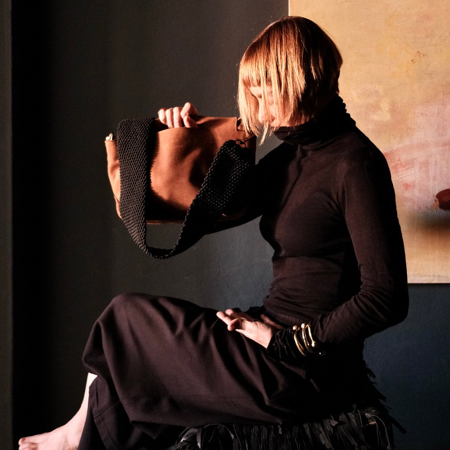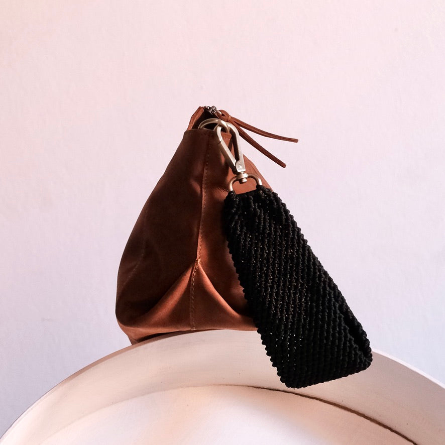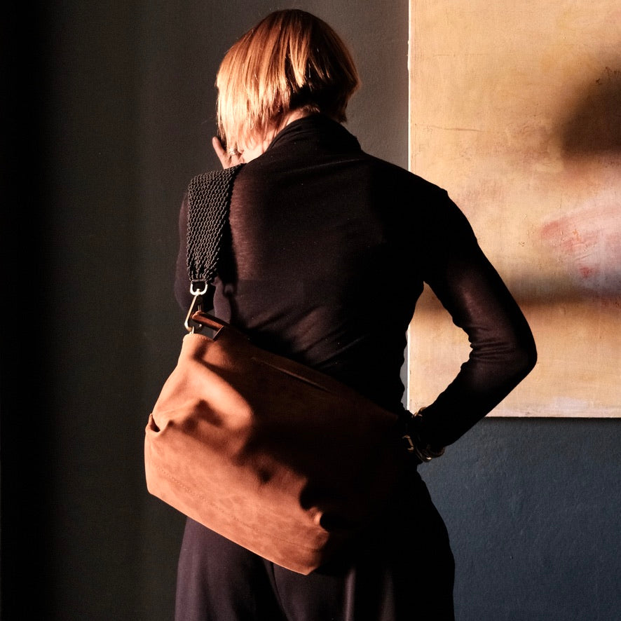 Sac à bandoulière Ogda - Cognac avec sangle en macramé noir